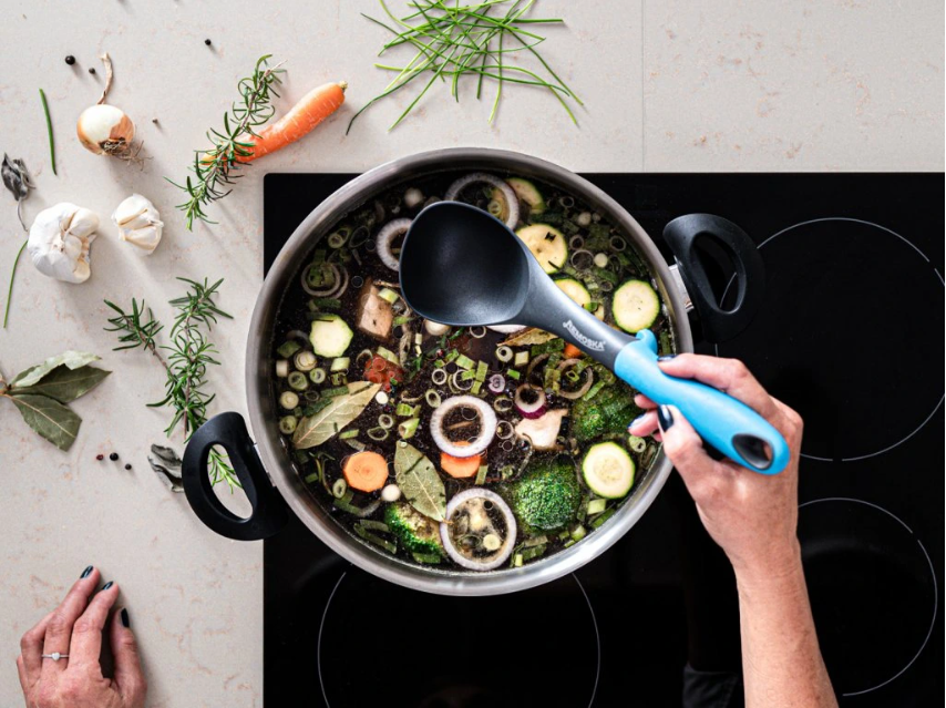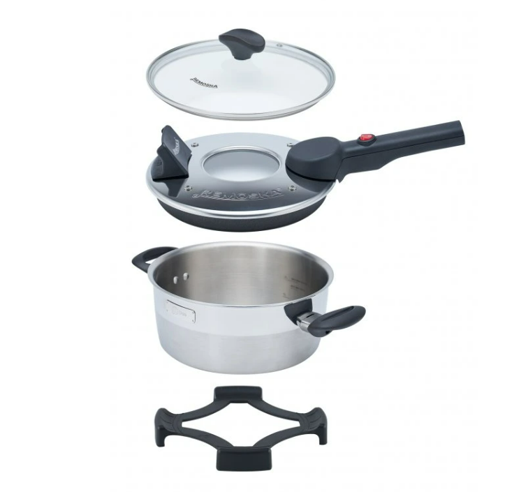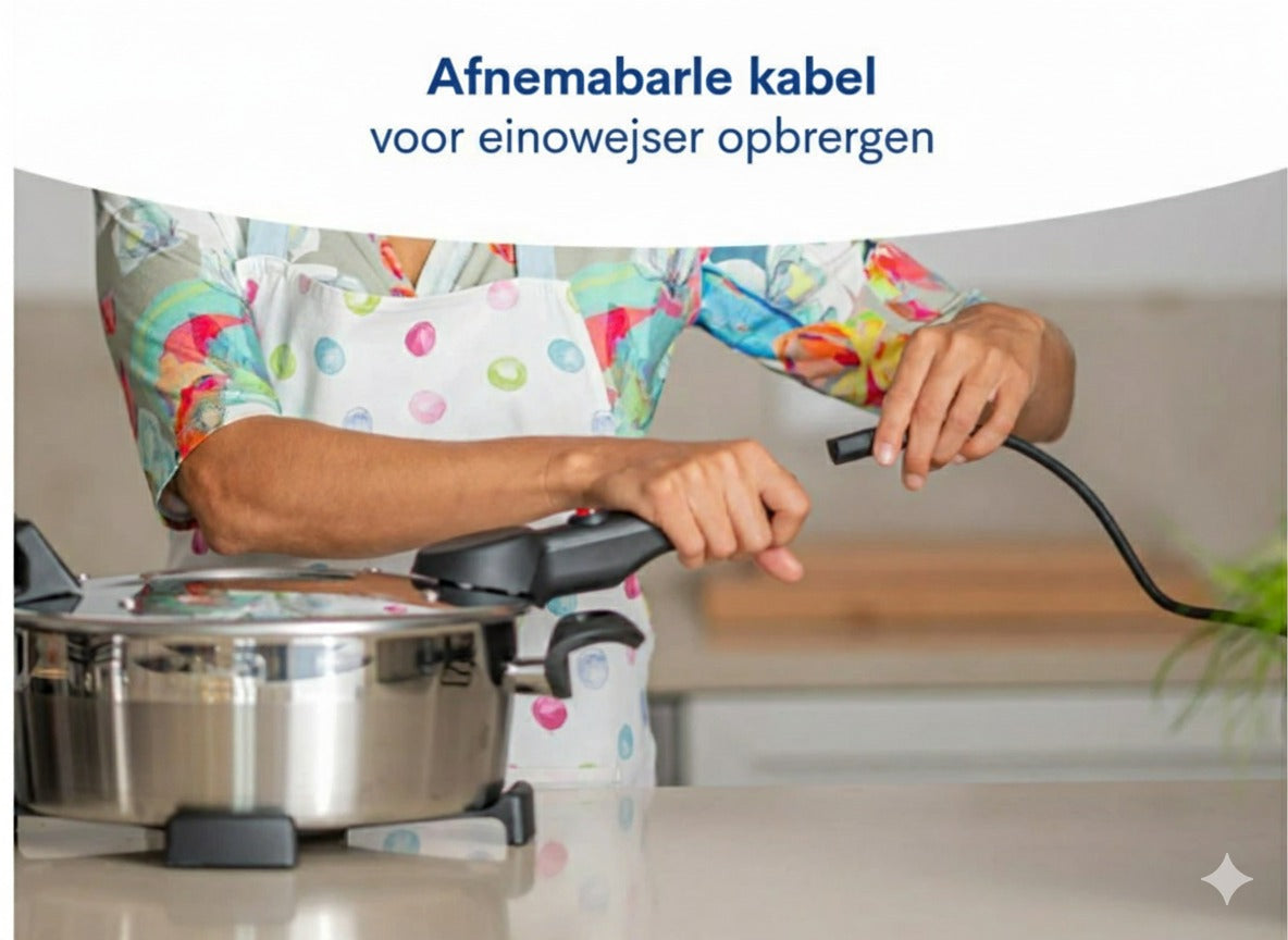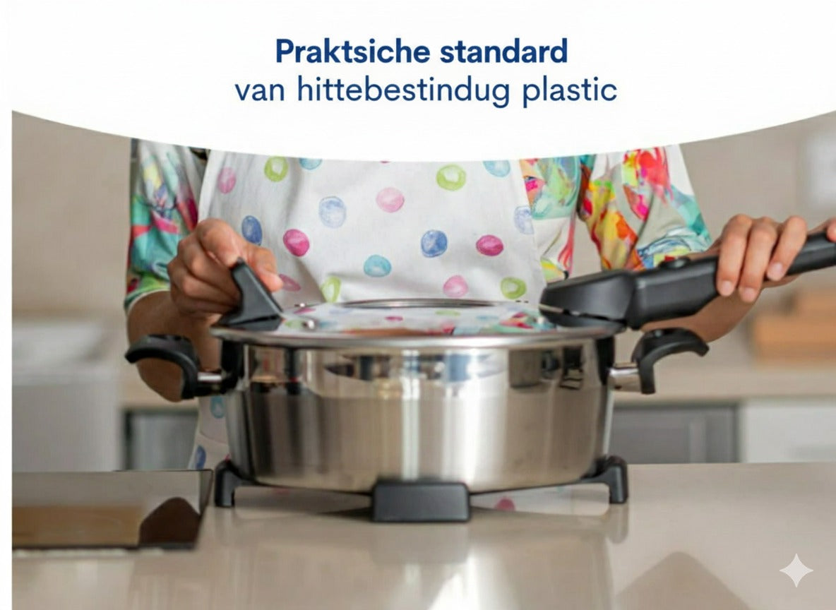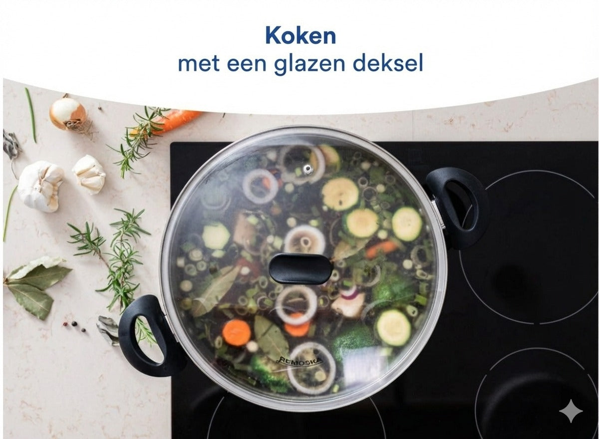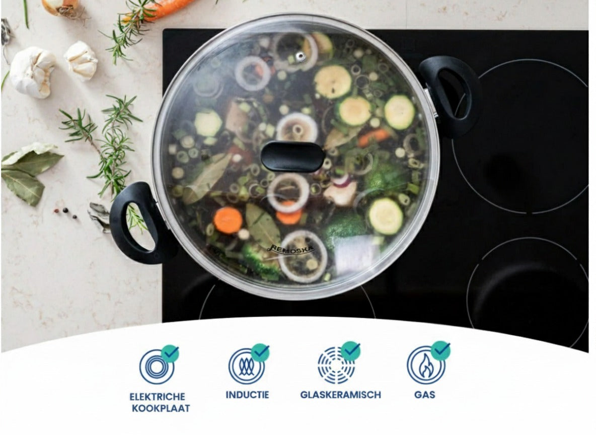 De Remoska® Dua bakpan met twee deksels maakt koken en bakken mogelijk in één roestvrijstalen pan. Het roestvrijstalen oppervlak zorgt voor een lange levensduur van de pan. Dankzij de aluminium laag is een gelijkmatige warmteverdeling in de hele pan gegarandeerd, wat zorgt voor perfecte kook- en bakresultaten. De onderzijde van het bakdeksel is voorzien van een Teflon® Classic antiaanbaklaag.